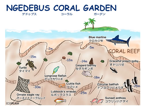 The Palau Underwater Point Map illustrated on this website is available as a set at Splash Dive Center.