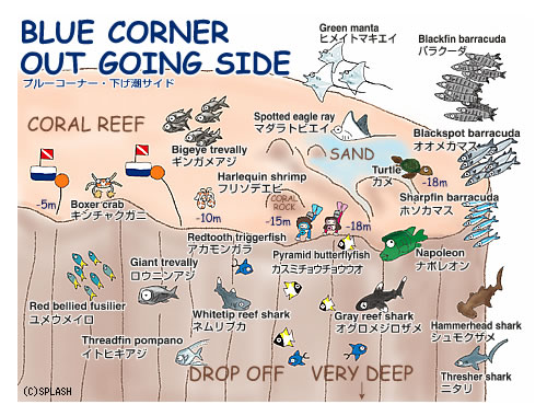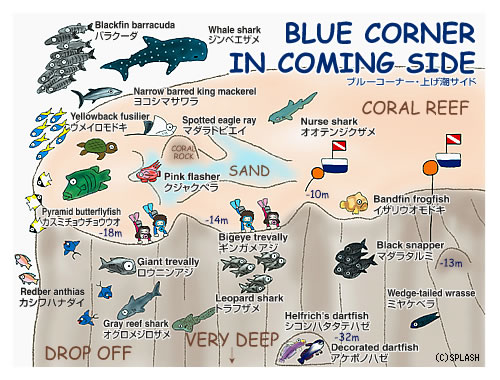 The Palau Underwater Point Map illustrated on this website is available as a set at Splash Dive Center.