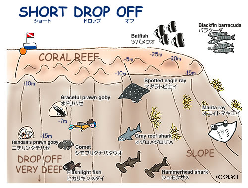 The Palau Underwater Point Map illustrated on this website is available as a set at Splash Dive Center.